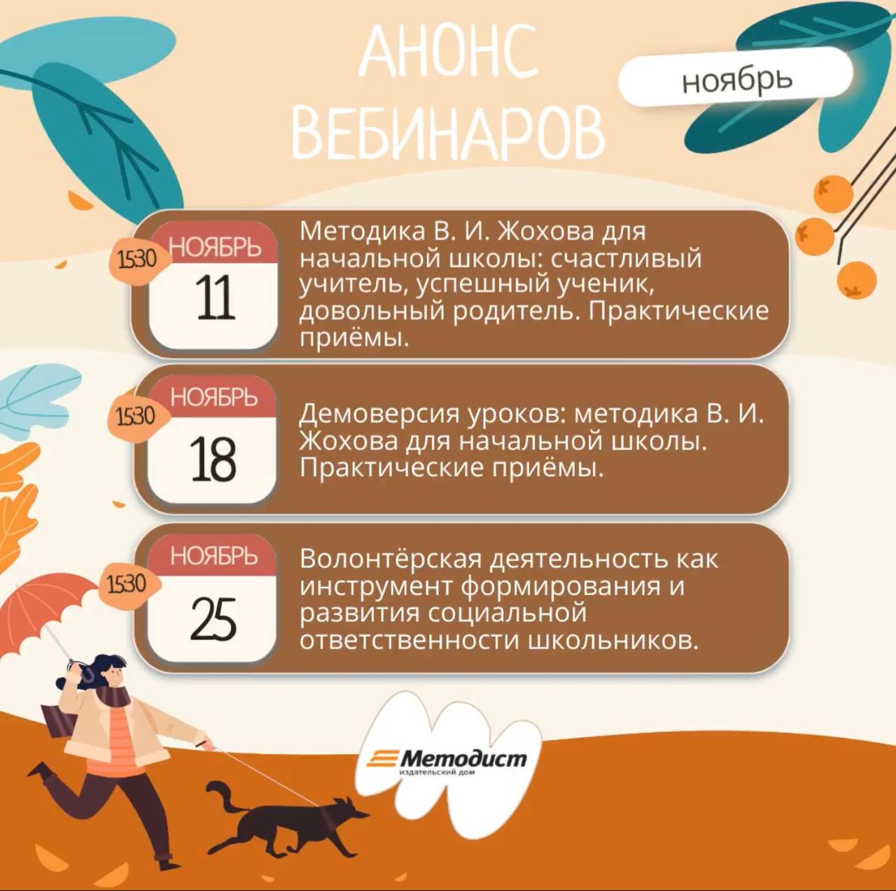В ноябре и декабре Издательский дом «Методист» проводит серию вебинаров для педагогов, которые позволят познакомиться с Методикой В.И. Жохова и практикой ее применения в начальной школе.